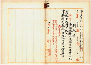 一五 台北郵便局長伊藤金弥ノ上申ニ依リ病気危篤ノ台湾総督府通信手川井清三郎ニ増俸ノ上事務格別勉励ニ付キ一時金ヲ賞与ス