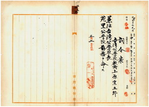台灣公學校教諭上原宗五郎公學校長兼任苑里公學校勤務任命ノ件