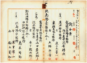 四二 台湾総督府民政部通信局長持地六三郎ノ内申ニ依リ鵞鑾鼻灯台勤務台湾総督府灯台看守花香伝次・基隆灯台勤務台湾総督府灯台看守鹿子木量一・鼻頭角灯台勤務台湾総督府灯台看守大塚平吉ニ北島灯台勤務ヲ命シ、鵞鑾鼻灯台勤務台湾総督府灯台看守山田粂次郎・淡水灯台勤務台湾総督府灯台看守木下惣次郎ニ彭佳嶼灯台勤務ヲ命シ、白沙岬灯台勤務台湾総督府灯台看守島本酉助・北島灯台勤務台湾総督府灯台看守鈴木英知ニ鵞鑾鼻灯台勤務ヲ命シ、白沙岬灯台勤務台湾総督府灯台看守佐藤太助・漁翁島灯台勤務台湾総督府灯台看守遠藤源三郎ニ基隆灯台勤務ヲ