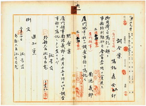 六一 厦門領事官補台湾総督府嘱託森安三郎ハ御用済ニ付キ嘱託ヲ解キ事務格別勉励ニ付キ一時金ヲ賞与シ、厦門領事菊池義郎ニ厦門地方ニ於ケル調査事務ヲ嘱託ス