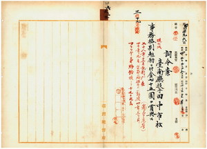 六三 台南庁長松木茂俊ノ稟申ニ依リ病気危篤ノ台南庁技手田中市松ニ事務格別勉励ニ付キ一時金ヲ賞与ス