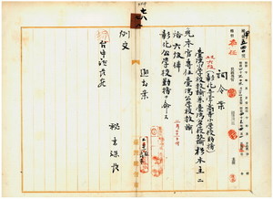 七八 台中庁長枝徳二ノ内申ニ依リ彰化尋常高等小学校勤務台湾小学校教諭兼台湾公学校教諭蔴本二ノ本官ヲ免シ台湾公学校教諭ニ選任シ彰化公学校勤務ヲ命ス