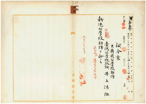 一二 嘉義庁長津田毅一ノ内申ニ依リ桃園庁大蕎崁公学校勤務台湾公学校教諭井上徳弥ニ新港公学校勤務ヲ命ス