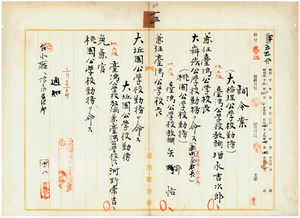 一三 桃園庁長西美波ノ内申ニ依リ大稲花公学校勤務台湾公学校教諭増永吉次郎ヘ台湾公学校長兼任及ヒ台北庁大崁蕎公学校勤務ヲ命シ、桃園公学校勤務台湾公学校教諭矢部恪ヘ台湾公学校長兼任及ヒ大苛園公学校勤務ヲ命シ、大苛園公学校勤務台湾公学校教諭兼台湾公学校長河野常吉ヘ兼官ヲ免シ桃園公学校勤務ヲ命ス