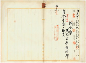 一六 台湾総督府民政部通信局長持地六三郎ノ内申ニ依リ嘱託田原禎治郎ヘ予算ノ都合上自今手当ヲ給セス