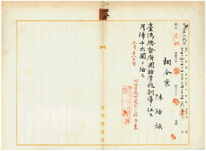 二五 台湾総督府国語学校長本荘太一郎ノ内申ニ依リ台湾総督府国語学校師範部乙科卒業ノ陳培煥ヲ台湾総督府国語学校訓導ニ任ス