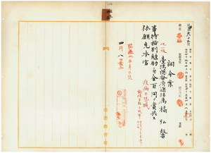 三三 台湾総督府通信属橘弘馨ハ疾病ニ罹リ職ニ堪ヘサル旨ヲ以テ辞職願ニ依リ事務格別勉励ニ付キ一時金ヲ賞与シ本官ヲ免ス