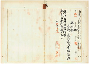 三九 台南庁長松木茂俊ノ内申ニ依リ台湾公学校教諭中条文四郎ヘ台湾公学校長兼任ヲ命シ安平公学校勤務ヲ命ス
