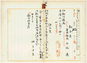 四七 新竹庁長家永泰吉郎ト台南庁長松木茂俊ノ内申ニ依リ台南庁属小池邁ヲ新竹庁属ニ任ス尚、台南庁属泥堂光次郎ノ新竹庁属ヘノ任命ハ庁長ノ委任範囲ニ属ス