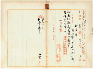 八五 南投庁長久保通猷ト新竹庁長家永泰吉郎ノ内申ニ依リ新竹庁技手山田理兵衛ヲ南投庁属兼南投庁技手ニ任ス