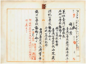 九七 台北庁長井村大吉ノ内申ニ依リ興直公学校頭前分校勤務台湾公学校教諭藤沢新平ニ台湾公学校長兼任ヲ命シ石碇公学校勤務ヲ命シ、錫口公学校勤務台湾公学校長六山定英ニ深坑公学校勤務ヲ命シ、石碇公学校勤務台湾公学校長上満常吉ニ錫口公学校勤務ヲ命ス
