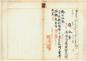 五九 斗六郵便局勤務台湾総督府通信属高須賀太郎ヨリ麻剌里亜ニ罹患以来体調不良ノ処更ニ疾病ニ罹リ内地転地療養ヲ要スルトシタ退官願ニ依リ昇級ノ上事務格別勉励ニ付キ一時金ヲ賞与シ本官ヲ免ス(379~386)