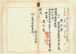 六〇 台北庁長井村大吉ノ内申ニ依リ台湾総督府国語学校助教授武内貞義ヲ台湾小学校教諭ニ任シ台北第三尋常高等小学校本科正教員ヲ命ス(387~388)