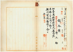 新竹醫院調劑師囑託井上助任醫院藥局長命新竹醫院勤務