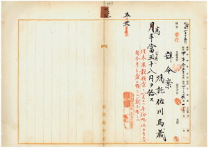 囑託佐川馬藏手當給與ノ件