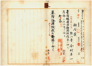 八 台湾総督府基隆海港検疫所長山田寅之助ノ内申ニ依リ台湾民政部内務局勤務台湾総督府雇今村孝一ヲ台湾総督府海港検疫員ニ任シ基隆海港検疫所勤務ヲ命ス