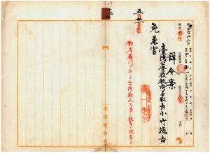 一七 台湾公学校教諭兼校長小竹徳吉ハ厦門ノ台湾籍民子弟教育従事ノ為メ兼官ヲ免ス