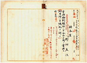 三五 台湾総督府民政部殖産局長宮尾舜治ノ具申ニ依リ元阿緱庁属殖産局嘱託野村文次ニ事務格別勉励ニ付キ一時金ヲ賞与シ御用済ニ付キ嘱託ヲ解ク