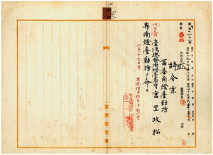 四二 広東領事館領事台湾総督府嘱託瀬川浅之進ハ御用済ニ付キ嘱託ヲ解キ事務格別勉励ニ付キ一時金ヲ賞与シ、広東領事館領事館補堀義貴ヘ広東地方ニ於ケル調査事務ヲ嘱託ス