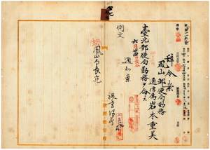 五七 台北郵便局長伊藤金弥ノ上申ニ依リ鳳山郵便局勤務台湾総督府通信属岩本重美ニ台北郵便局勤務ヲ命ス