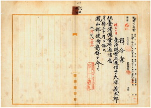 六〇 鳳山郵便局長岡儀三郎ノ内申ニ依リ台湾総督府通信手大塚義太郎ヲ台湾総督府通信属ニ任シ鳳山郵便局勤務ヲ命ス