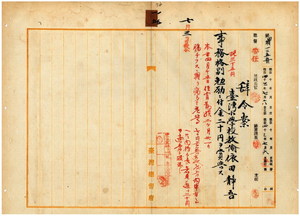 一五 台北庁長井村大吉ノ内申ニ依リ病気危篤ノ台北第三尋常高等小学校尋常本科正教員台湾小学校教諭依田静吾ヘ事務格別勉励ニ付キ一時金ヲ賞与ス
