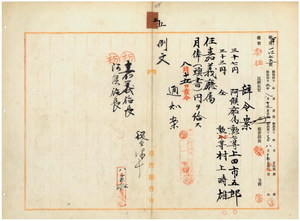 五 嘉義庁長津田毅一及ヒ阿緱庁長佐藤謙太郎ノ内申ニ依リ阿緱庁属ノ上田市五郎ト村上時雄ヲ嘉義庁属ニ任ス