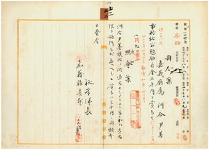 五二 嘉義庁長津田毅一ノ内申ニ依リ病気ノ為メ退官ヲ願出タル嘉義庁属河合尹善ニ事務格別勉励ニ付キ一時金ヲ賞与ス