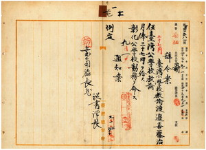 一 台中庁長枝徳二ノ内申ニ依リ打狗尋常高等小学校勤務台湾小学校教諭渡辺喜藤治ヲ台湾公学校教諭ニ任シ彰化公学校勤務ヲ命ス(9~12)