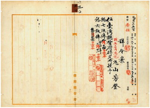 三〇 台湾総督府研究所長高木友枝ノ内申ニ依リ台湾総督府研究所嘱託丸山芳登ヲ台湾総督府研究所技手ニ任シ九月一四日付ヲ以テ七級俸ヲ次デ明治四四年三月三一日付ヲ以テ六級俸トス(123~124)