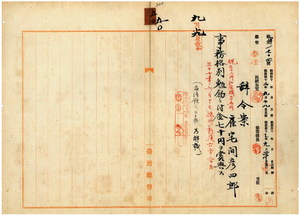 五〇 台湾総督官房文書課長斎藤参吉ノ内申ニ依リ台湾銀行ヘ就職スル為メ辞職ヲ願出タル台湾総督府雇宅間彦四郎ニ事務格別勉励ニ付キ一時金ヲ賞与ス(200~201)