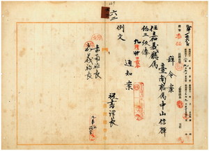 六二 嘉義庁長津田毅一ト台南庁長松木茂俊ノ転任内申ニ依リ台南庁属中山信輝ヲ嘉義庁属ニ任ス(267~268)