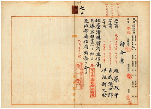 七〇 台湾総督府民政部持地六三郎ノ内申ニ依リ先般施行ノ文官普通試験合格者ニシテ台湾総督府雇後藤改平(履歴書なし)及ヒ民政部通信局勤務台湾総督府雇ノ吉武弥四郎ト伊坂新之助ヲ台湾総督府属ニ任シ民政部通信局勤務ヲ命ス(293~300)