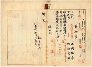 一〇四 台南郵便局長曽祢吉弥ノ上申ニ依リ台南郵便局通信事務員ノ山岡瑞彦ト帖佐秀雄ヲ台湾総督府通信手ニ任シ台南郵便局勤務ヲ命ス(431~434)