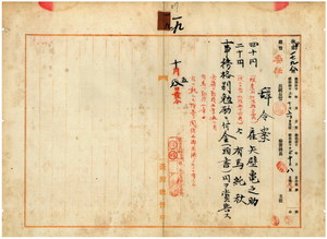 一九 台湾総督府民政部殖産局長代理峡謙斉ノ具申ニ依リ経費ノ都合ニテ解雇シタル殖産局雇ノ矢壁亀之助ト有馬純秋ニ事務格別勉励ニ付キ一時金ヲ賞与ス