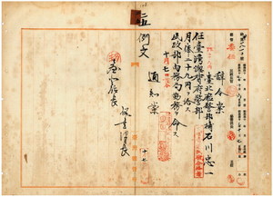 二五 台湾総督府民政部内務局長代理内田嘉吉ノ内申ニ依リ台北庁警部補石川忠一ヲ台湾総督府警部ニ任シ民政部内務局勤務ヲ命ス