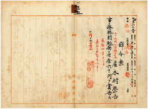雇木村榮吉賞與ノ件