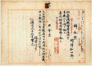 通信事務員岡澤和四郎通信手任命ノ件
