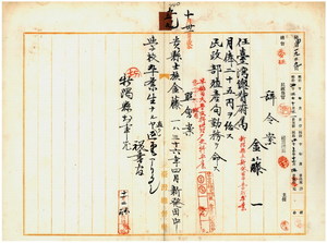 金藤一總督府屬任用ノ件