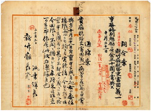 六四 新竹庁長家永泰吉郎ノ稟申ニ依リ新竹庁税務吏富田義一ヲ病気危篤ニ因リ事務格別勉励ニ付キ一時金ヲ賞与ス