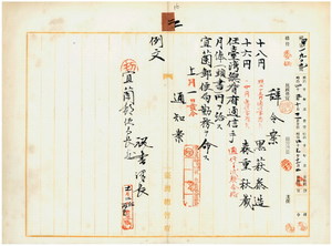 二 宜蘭郵便局長松尾宗幽ノ内申ニ依リ通信手試験合格ノ宜蘭郵便局勤務事務員黒萩泰造ト森重秋蔵ニ台湾総督府通信手ヲ任シ宜蘭郵便局勤務ヲ命ス