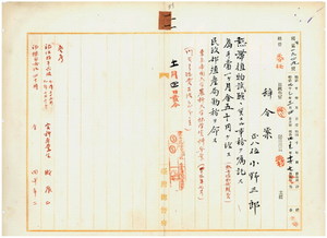 小野三郎熱帶植物試驗ニ關スル事務囑託及殖產局勤務任用ノ件