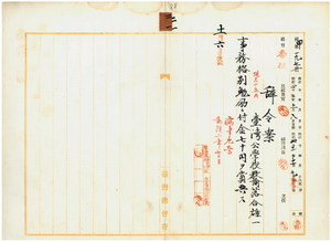 二一 台北庁長井村大吉ノ内申ニ依リ基隆公学校勤務台湾公学校教諭落合雄一ニ病気危篤ノ為メ事務格別勉励ニ付キ一時金ヲ賞与ス