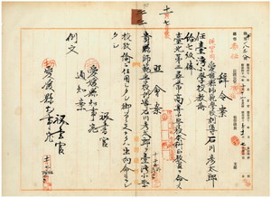 愛媛縣師範學校訓導石川彥太郎臺灣小學校教諭、臺北第三尋常高等小學校本科正教員任命ノ件
