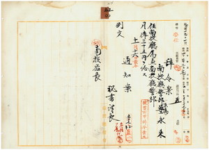 五〇 南投庁長久保通猷ノ稟申ニ依リ南投庁警部兼属豊永来ヲ南投庁属兼南投庁警部ニ任ス
