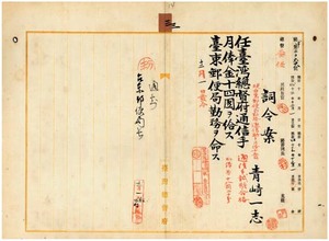 三 台東郵便局長鈴木重嶽ノ内申ニ依リ台東郵便局花蓮港出張所勤務通信助手青崎一志ヲ台湾総督府通信手ニ任シ台東郵便局勤務ヲ命ス