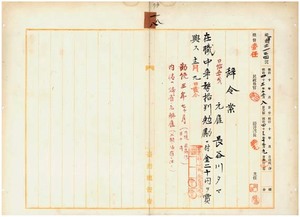 一八 台湾総督府民政部通信局長代理鈴木三郎ノ内申ニ依リ元台湾総督府雇長谷川タマニ在職中事務格別勉励ニ付キ一時金ヲ賞与ス