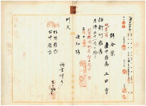 二三 台中庁長枝徳二ト新竹庁長家永泰吉郎ノ内申ニ依リ台中庁属上田勇ヲ新竹庁属ニ任ス[二四も見よ]