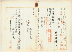 六七 阿緱庁長佐藤謙太郎ノ内申ニ依リ台湾総督府民政部財務局税務課勤務台湾総督府嘱託東海林謹二ヲ阿緱庁技手ニ任ス