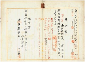 七五 南投庁長久保通猷ノ稟申ニ依リ病気ノ為メ辞職ヲ願出タル南投庁税務吏宮島亦男ニ事務格別勉励ニ付キ一時金ヲ賞与ス